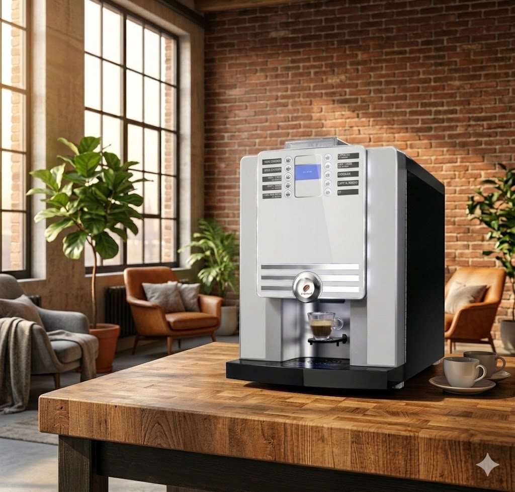 Diseñada por Rhea Vendors Group (Italia), esta máquina automática combina rendimiento, diseño compacto y facilidad de uso, garantizando una experiencia de barista en cada taza.